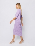Lungo al polpaccio, presenta lo scollo a barchetta, le maniche al gomito e due maxi tasche applicate.