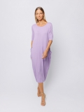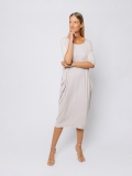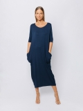 Lungo al polpaccio, presenta lo scollo a barchetta, le maniche al gomito e due maxi tasche applicate.