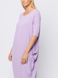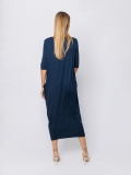 Lungo al polpaccio, presenta lo scollo a barchetta, le maniche al gomito e due maxi tasche applicate.