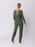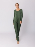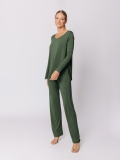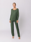 Weiter Rundhalsausschnitt und lange Ärmel.