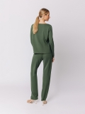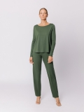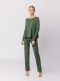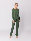 Weiter Rundhalsausschnitt und lange Ärmel.
