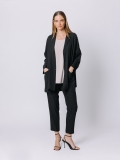 Chiusura centrale a tre bottoni, con collo e rever, tasche applicate.