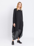 Abito in tessuto punto Milano con inserto sul fondo in tessuto in ecopelle.