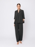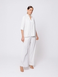 Nelle collezioni Midali, il gessato viene scelto per la sua capacità di strutturare il capo senza irrigidirlo, accompagnando la silhouette con naturalezza e slanciando la figura. La riga sottile diventa così un elemento di equilibrio: definisce, ordina, ma lascia spazio al movimento e alla libertà espressiva che da sempre caratterizzano il brand.