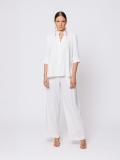 Scoprilo declinato in questa camicia Martino Midali dalla linea regular fit svasata, con collo alla coreana aperto a V. Maniche al gomito con collo e spacchi laterali. Lunghezza alla vita.