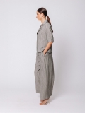 The flowing line caresses the body without constricting it, while the polo neckline introduces a minimalist and sophisticated detail. The wide short sleeves with cuffs and side slits amplify the feeling of lightness and movement.