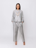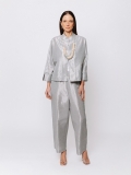 La lunghezza calibrata e il volume boxy la rendono perfetta sia in coordinato con il pantalone gaucho sia abbinata a capi più asciutti per creare contrasti sofisticati.