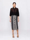 La grafica diventa struttura attraverso questa gonna rigata in jacquard lino e cotone, dove il disegno non è semplice decorazione ma parte integrante della tessitura.