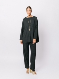 Wide body with a boxy shape, dropped armholes and long sleeves.
