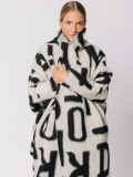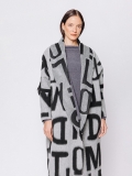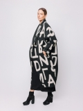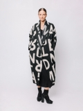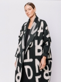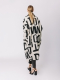 La lunghezza decisa e il drappeggio morbido del collo a scialle rendono questo cappotto uno dei capi più iconici della capsule Lettering. Le lettere, in nero su bianco, si rincorrono sul tessuto come un messaggio in movimento, disegnando una silhouette fluida e raffinata.