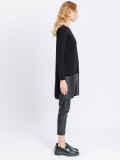 Abito in lana con percentuale di cashmere, lavorato in maglia rasata in finezza 12, con inserto in ecopelle sul fondo.
