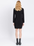 Maniche lunghe, scollo rotondo. Fondo davanti in ecopelle. Lunghezza ginocchio