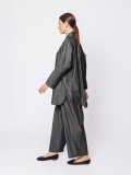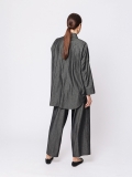 The fine, compact weave gives chromatic depth to the black, creating a matte, elegant, and textured surface that accompanies movement without stiffening. It's a breathable fabric, designed to be worn for a long time, capable of evolving with use and expressing an authentic, never ostentatious beauty.