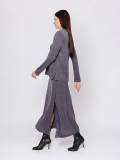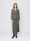 Modello a scatoletta da volumi contenuti, con scollo a V e maniche lunghe.
