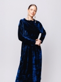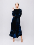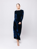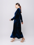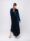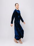 Abito lungo in velluto della linea Midali Toujours, caratterizzato da una silhouette fluida e leggermente svasata che accarezza il corpo senza costringerlo.