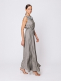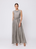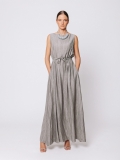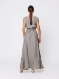 Eleganza fluida e senza tempo definiscono questo abito lungo in misto viscosa, pensato per accompagnare il corpo con leggerezza e armonia.