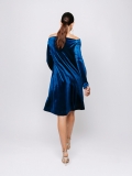 La linea morbida e la gonna svasata valorizzano la silhouette con naturalezza, mentre il velluto regala profondità e luminosità al colore.