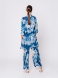 Indossata con il pantalone coordinato costruisce un completo fluido e moderno; abbinata invece a pantaloni o gonne in tripla georgette blu tinta unita, permette di creare combinazioni più essenziali e sofisticate.