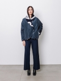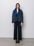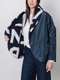 Essenziale nel design, sorprendente nei dettagli: la giacca corta con collo a scialle unisce il dinamismo della stampa Lettering all'eleganza funzionale del doppio tessuto.