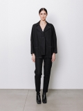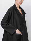 Questa giacca dai volumi generosi tipici della linea Midali Toujours, presenta una forma quadrata, l'allacciatura con un bottone a sormonto sul fronte, e un ampio rever.