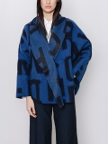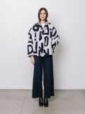 Un capospalla che è dichiarazione di stile. Questa giacca corta della capsule Lettering si distingue per la sua linea oversize e il pattern grafico che mixa blu navy sul blu notte, ispirato alle lettere maiuscole del nome Martino Midali.