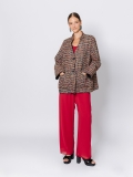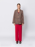 none			Giacca in tessuto ammagliato con intreccio tela dorato e multicolor.   Linea over a tre bottoni, maniche a tre quarti con spacchetto, tasche applicate, collo a listino e spacco nel centro dietro.   Lunghezza sotto il fianco.