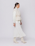 La lavorazione compatta del tessuto crea un effetto tridimensionale che dona volume senza appesantire, mentre la linea leggermente svasata e la chiusura con zip frontale lo rendono perfetto da indossare sopra una maglia o una camicia.