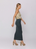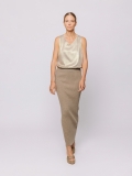 Modello diritto lungo a tubino con elastico in vita e lavorazione a costine verticali.