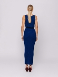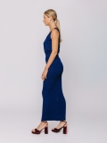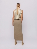 Modello diritto lungo a tubino con elastico in vita e lavorazione a costine verticali.