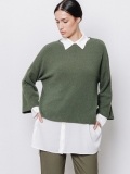 Disponibile in taglia unica e in due tonalità versatili — tortora e verde militare — si abbina perfettamente ai pantaloni ampi o alle gonne morbide, per look equilibrati e contemporanei.