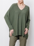 Disponibile in taglia unica e in due tonalità versatili — tortora e verde militare — si abbina perfettamente ai pantaloni ampi o alle gonne morbide, per look equilibrati e contemporanei.