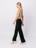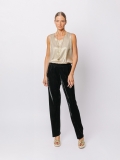 Pantalone dritto in velluto nero dalla linea essenziale e fluida, simbolo della versatilità Midali Toujours.