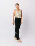 Pantalone dritto in velluto nero dalla linea essenziale e fluida, simbolo della versatilità Midali Toujours.