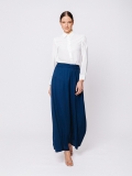 Questo pantalone ampio in tripla georgette è pensato per accompagnare il passo con naturalezza e creare una silhouette slanciata e contemporanea. Il tessuto impalpabile scivola sul corpo generando un movimento morbido e raffinato.