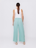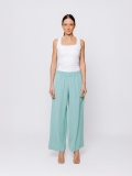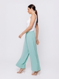Il volume ampio della gamba crea una silhouette slanciata e dinamica, mentre il tessuto cady fluido accompagna ogni passo con una caduta morbida e naturale. La vita elasticizzata garantisce comfort assoluto senza rinunciare alla pulizia della linea.