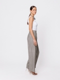 La gamba dritta e ampia, unita alla vita elasticizzata, garantisce comfort e vestibilità impeccabile, mentre il tessuto leggero esalta la fluidità del design.