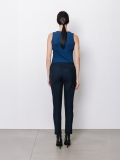 Realizzato in tessuto di viscosa e nylon elasticizzato, dalla mano fresca e tecnica, questo pantalone si presenta resistente, lavabile in lavatrice per la massima praticità.