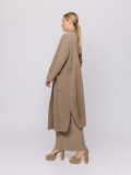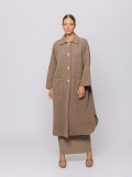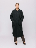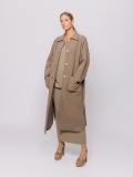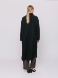 Questo spolverino in lana cotta avvolge la figura con la sua linea morbida e destrutturata, pensata per accompagnare i movimenti senza rigidità.