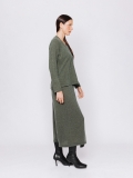 Modello a scatoletta da volumi contenuti, con scollo a V e maniche lunghe.