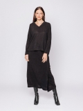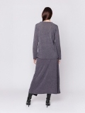 Modello a scatoletta da volumi contenuti, con scollo a V e maniche lunghe.